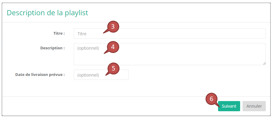 Afin de créer une livraison à partir d'une playlist, suivez les étapes suivantes :