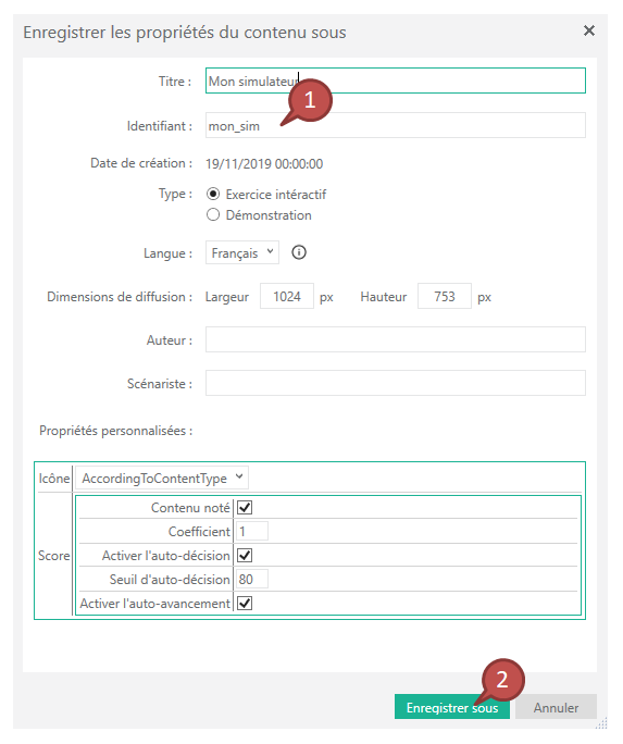 Une fois le nouveau simulateur créé, repérez son identifiant technique. Pour cela rendez vous dans les propriétés du simulateur nouvellement créé.