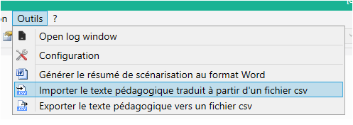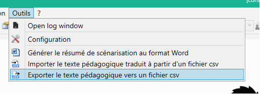 Vous pouvez exporter les messages pédagogiques d'un simulateur dans un fichier CVS. Pour cela choisissez l'option correspondante.