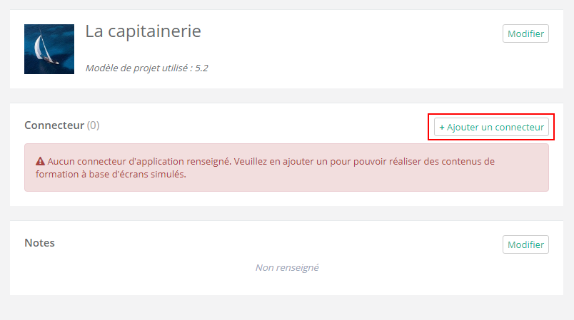 Sur l'écran Détails du projet, cliquez sur + Ajouter un connecteur.
