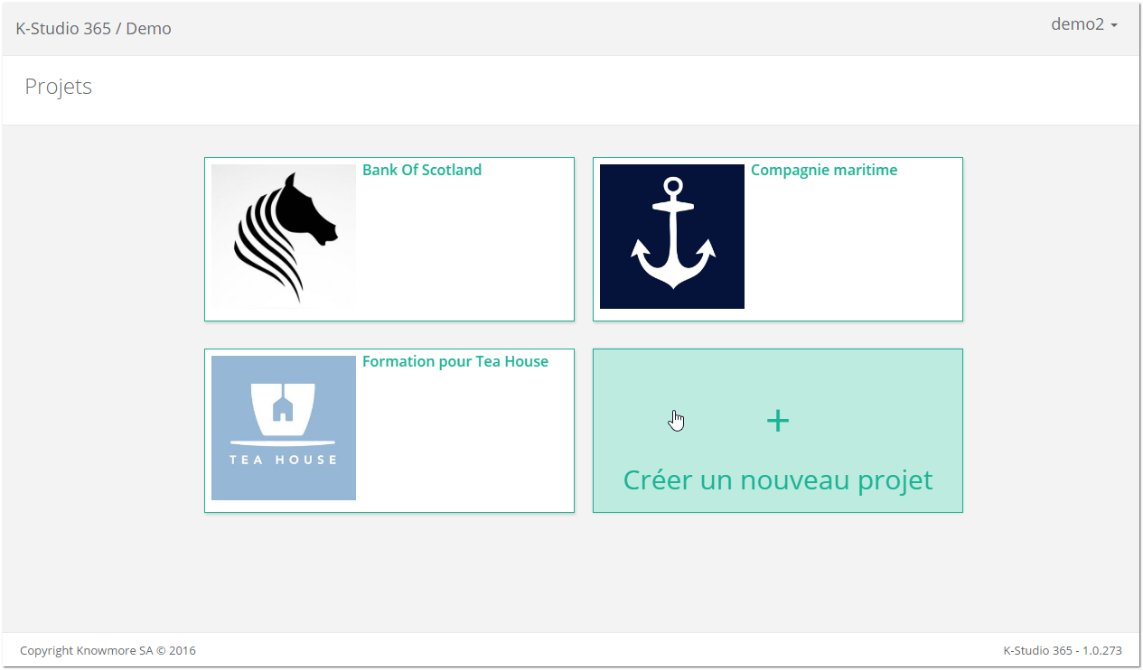 Sur l'écran Projets, cliquez sur la tuile Créer un nouveau projet en corps de page.