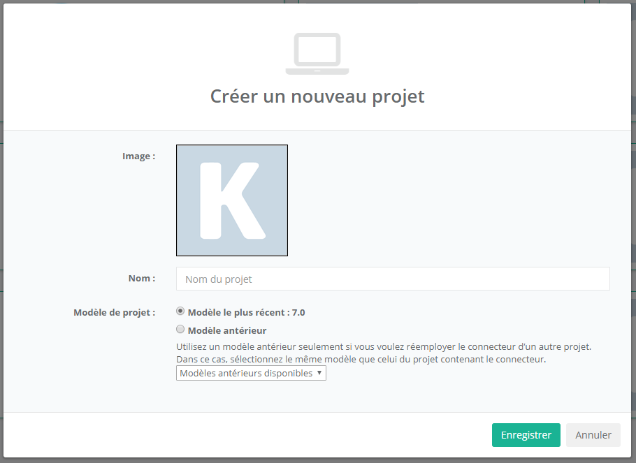 Une fenêtre Créer un nouveau projet apparaît.