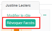 Dans votre projet, sélectionnez l'écran Équipe. Sur la vignette de l'utilisateur à qui vous ne voulez plus autoriser l'accès à votre projet, cliquez sur le bouton à 3 points … dans l'angle haut droite. (Ce bouton apparaît seulement si vous êtes propriétaire du projet.)